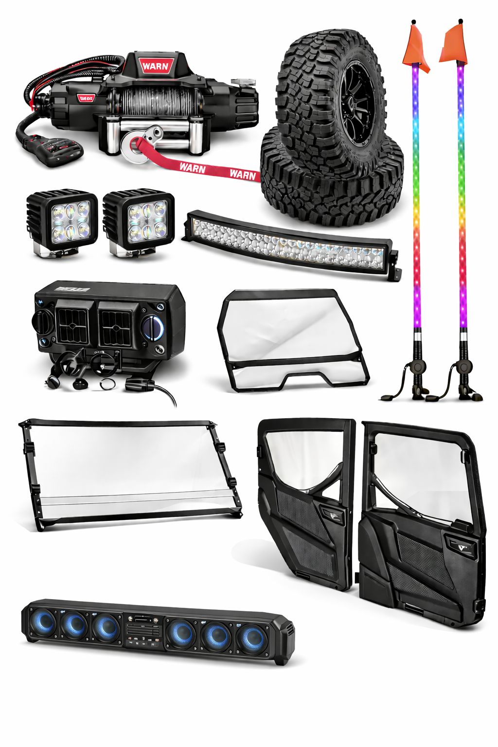 Make your machine your own! We can install all the accessories your heart desires. Wheels and tires, lighting, heaters, stereos, etc. We can do it all. Make it a work horse, an off road toy, or both!